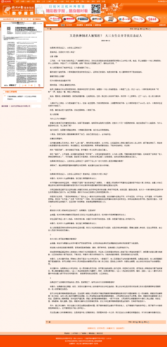 三天前,一条“扶老太被讹寻证人”的微博引发热议,发布这条消息的自称是淮南师范学院大三女学生小袁。她说,早上她看到一个老人摔倒受伤,好心上前搀扶,并垫付了二千元医药费。结果“现在老太家属赖上我了,要我全权负责。”老人的家属扣住了她的学生证,认为是她撞伤了老人。