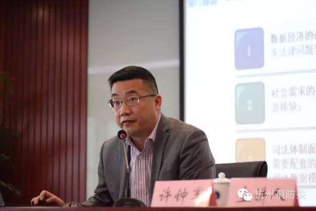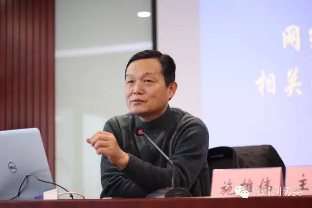 本次研讨会主题刑民搭配、议程紧凑、内容充实、反响热烈。上半场由浙江省公安厅网络安全保卫总队施雄伟副总队长作题为《网络犯罪相关法律问题》的讲座,刑防委沈国勇主任主持。施副队长先是简单介绍了网警机构的名称演变及业务范围,紧接着以详实数据分析了互联网犯罪的现状及主要类型,并通过“系列手机网银木马盗窃案”这一典型案例,剖析了互联网犯罪产业化的发展趋势;此外,施副队长还对计算机信息系统犯罪的认定及虚拟财产的定性等问题作了深入解析。